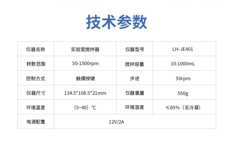 實驗室攪拌器LH-JE401技術(shù)參數(shù):